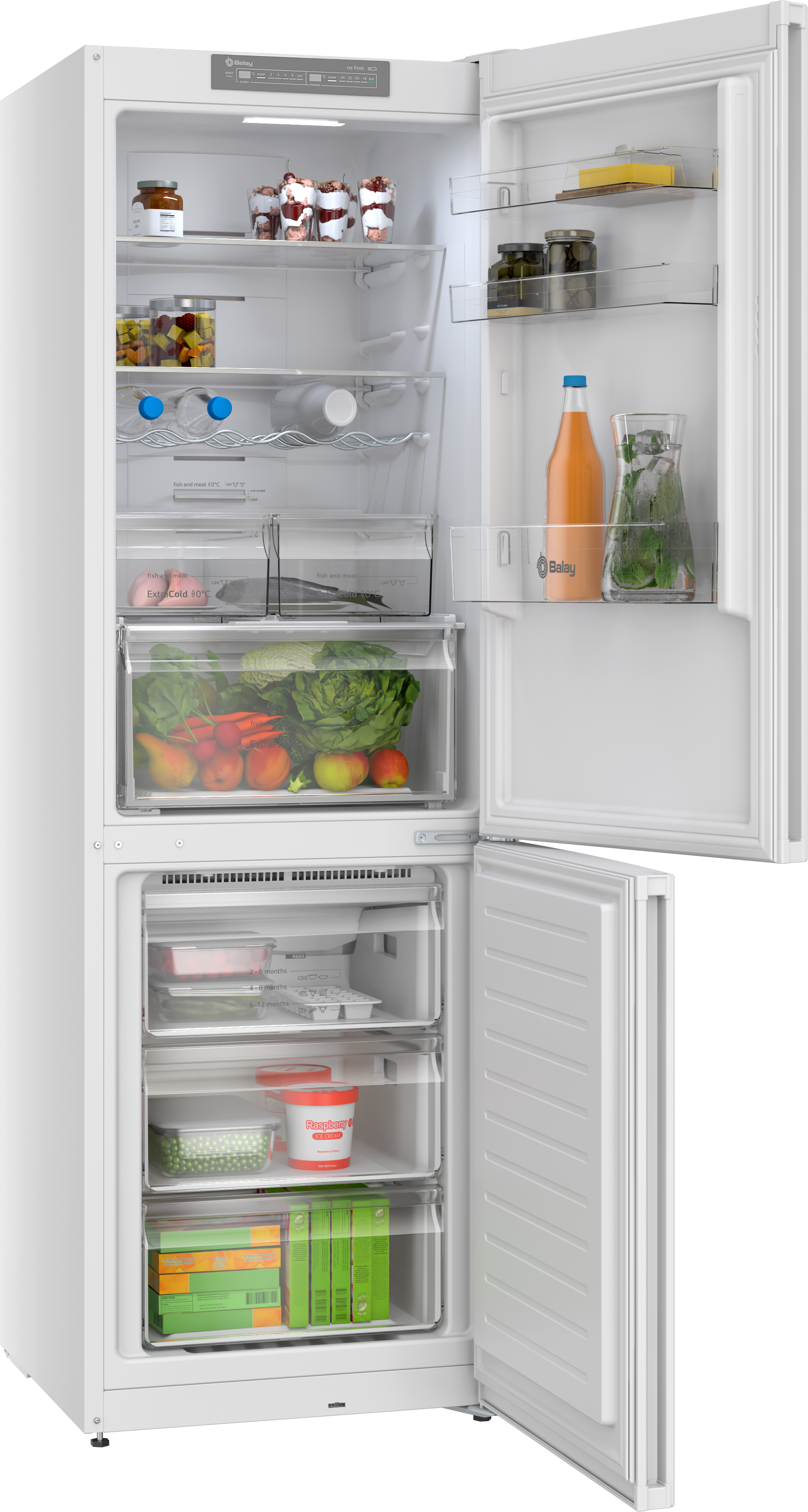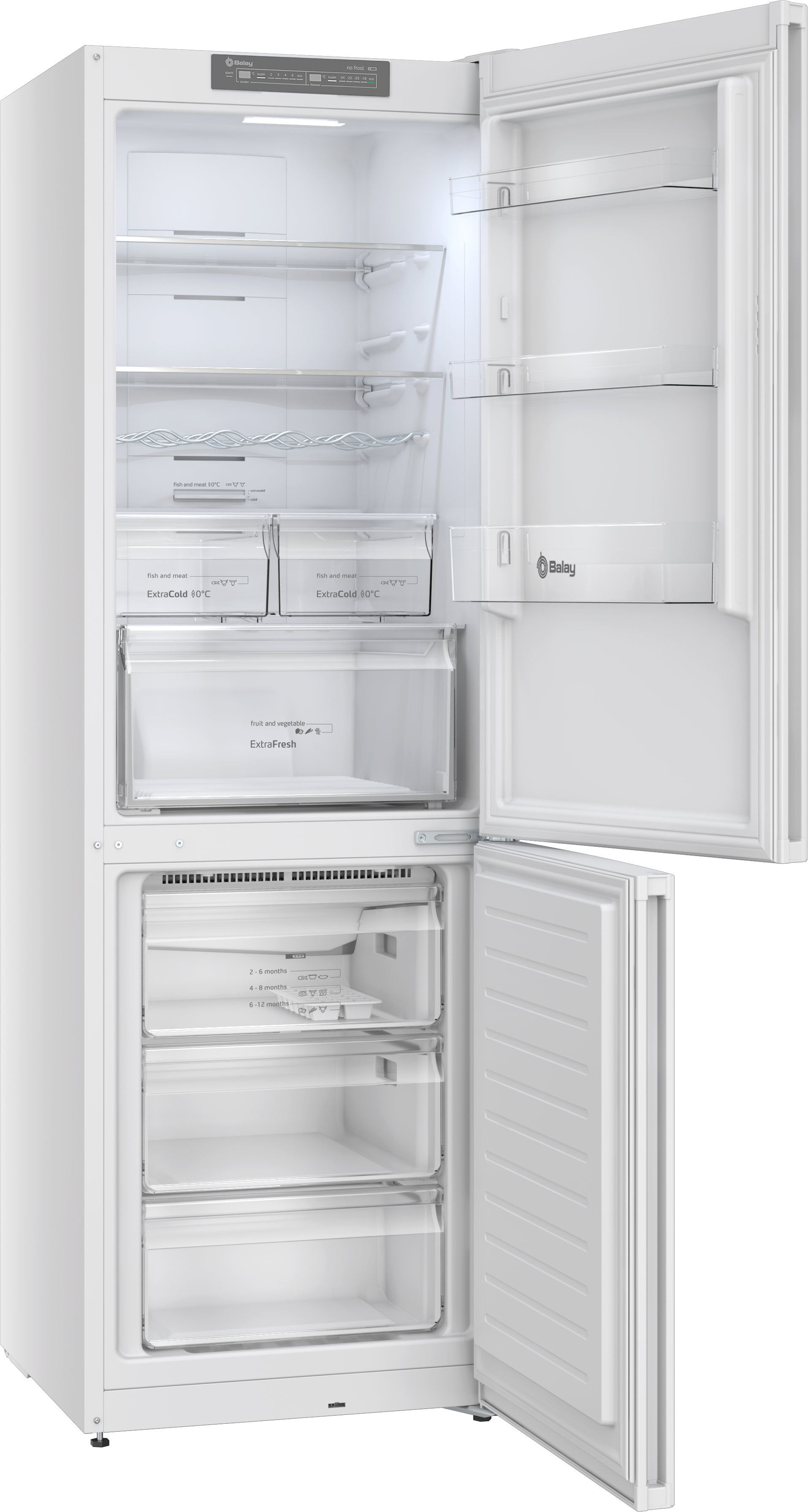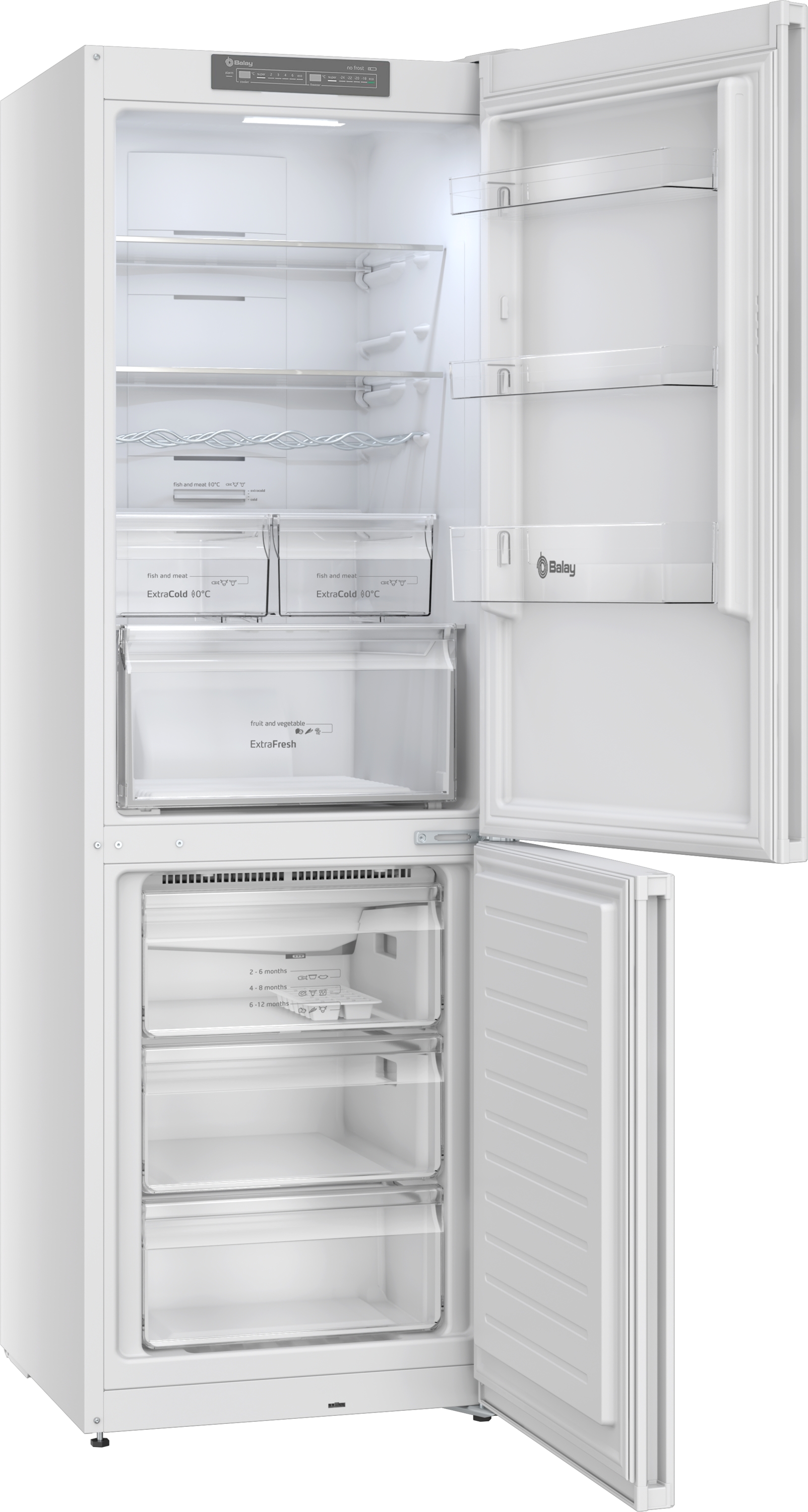 COMBI BALAY 3KFE553WI NF 186X60 E Display LED temperatura Super congelación y refrigeración Puerta reversible Autonomía hasta 13h sin corriente Iluminación LED interior Señal visual y acústica puerta abierta AltoxAnchoxProfundo 1860x600x66mm