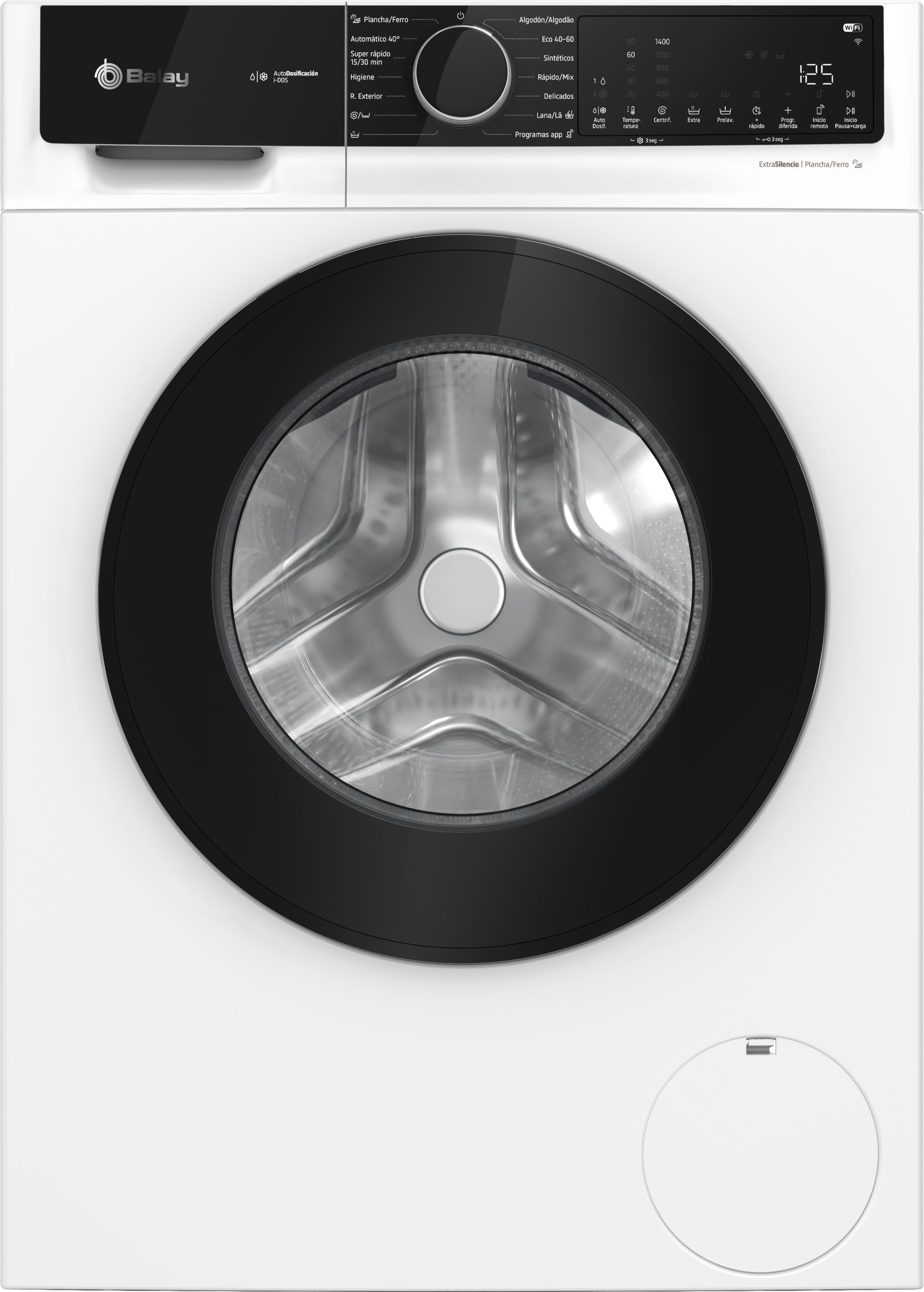 | USP text indicating a statement of the main highlight or highlights of the product. | Poner la lavadora nunca fue tan cómodo: rellena el cajetín de detergente y suavizante, y olvídate de rellenarlos durante más de un mes. |