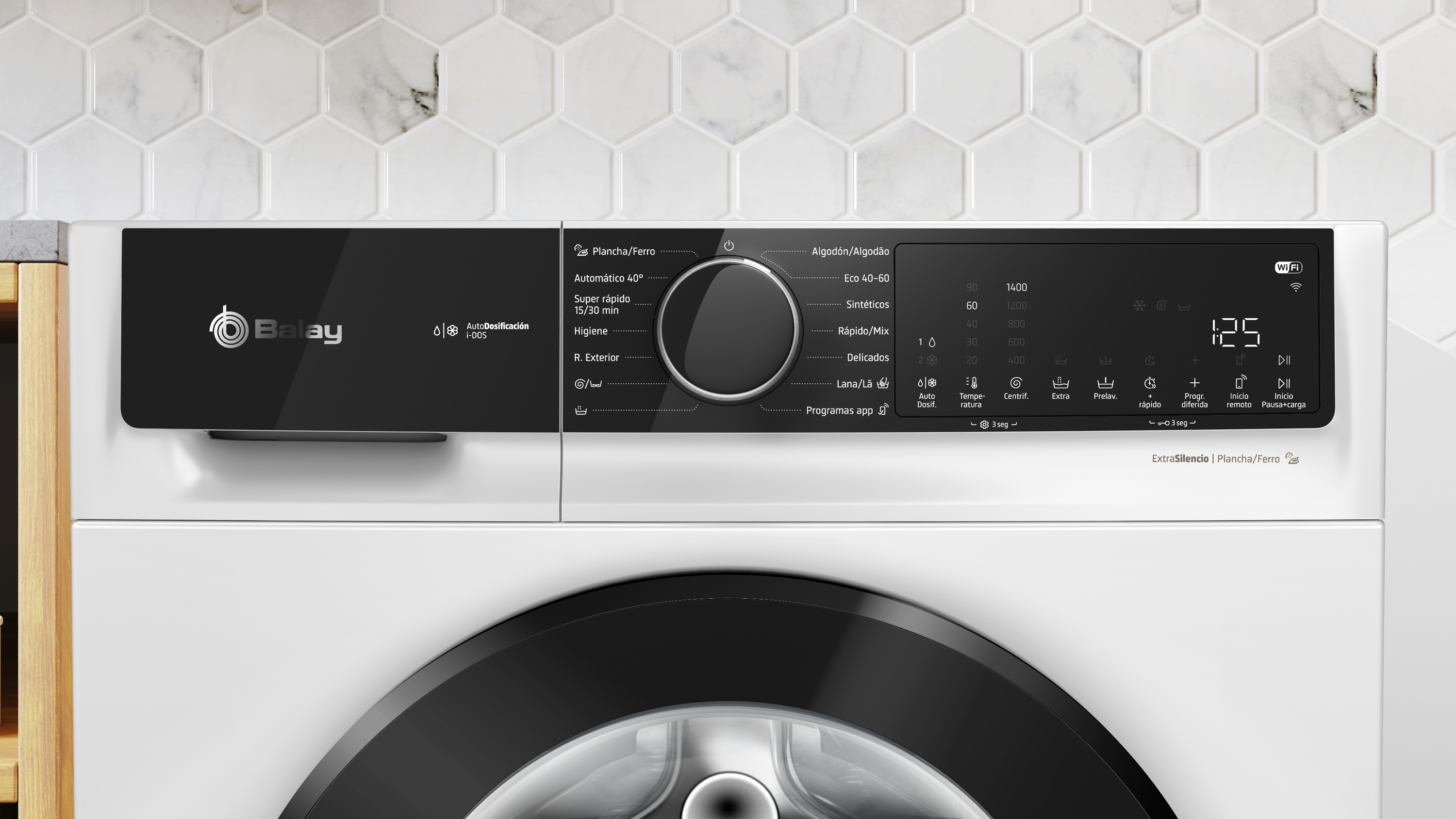 | Descripción amplia del producto | Capacidad: 10 kg Velocidad máx. de centrifugado: 1400 r.p.m. Selección de centrifugado de 1400 a 400 r.p.m.** con exclusión de centrifugado final. Posibilidad de instalación bajo encimera en muebles de altura 85 cm o más. Clase de eficiencia energética A (dentro del rango de A a G)* Tecnología AquaControl Plus: ajuste de la entrada de agua en función de la carga para obtener los mejores resultados con el mínimo consumo de agua Motor ExtraSilencio con 10 años de garantía Reducción de ruido. Sistema automático de distribución de ropa: Sensor 3G y Reducción de ruido: Paneles laterales antivibración. AutoDosificación de detergente y suavizante Display LED táctil de gran tamaño con recomendación de carga. Función Más rápido: hasta un 65% menos de tiempo. Indicación de tiempo restante, estado de programa y fin diferido hasta 24 h. Programa Plancha: reduce las arrugas y facilita el planchado. Programas especiales: Automático, Higiene, Rápido/mix, Súper rápido 15/30 min., Ropa de exterior. Funciones: Prelavado, aclarado extra, Selección de temperatura, Reducción de centrifugado. Función Pausa+carga: apertura de la puerta durante el ciclo de lavado. Protección múltiple de agua. Bloqueo de seguridad para niños. |