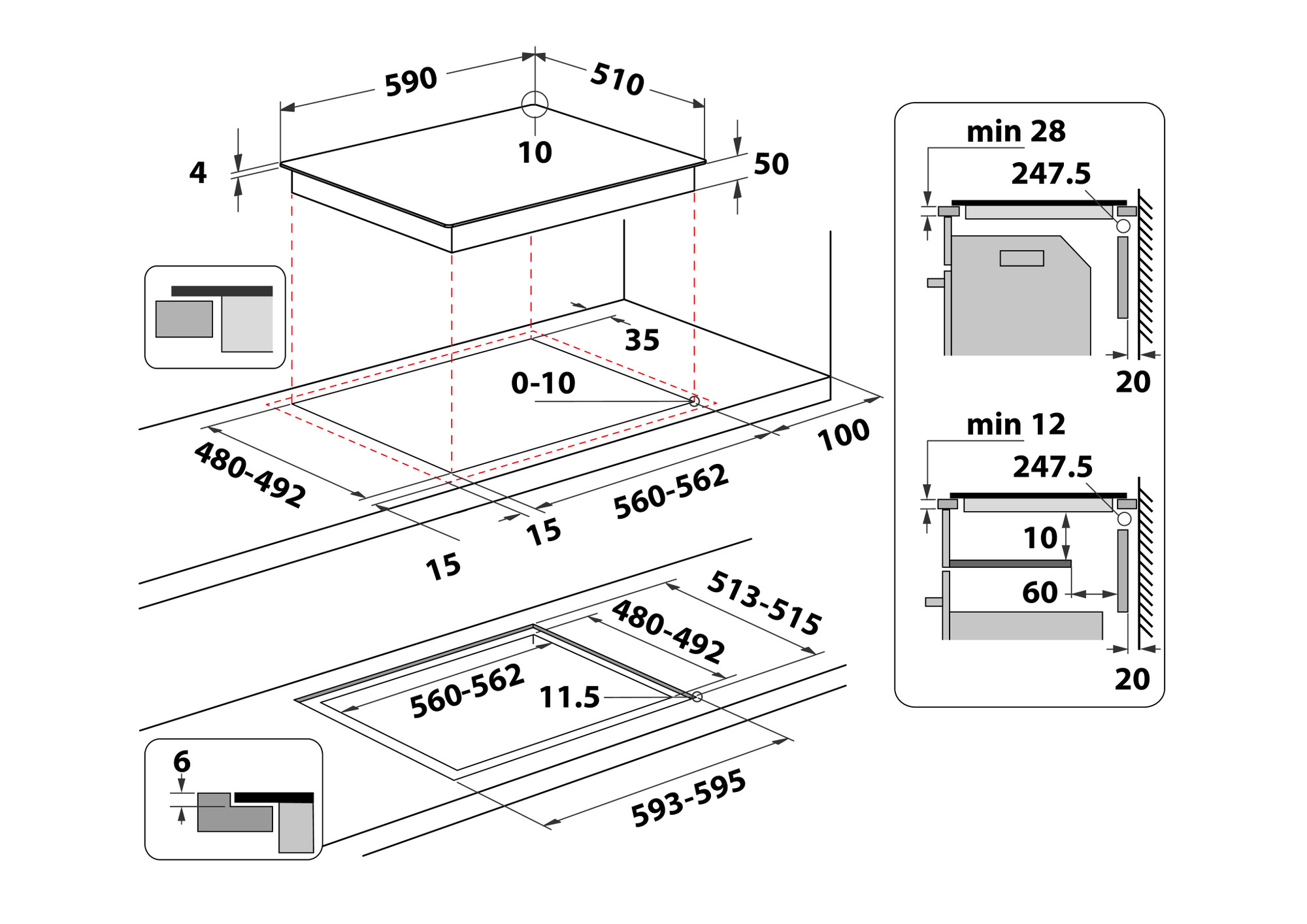 | Altura mínima del hueco | 28 |